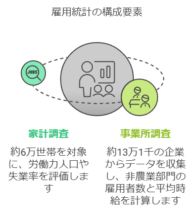 雇用統計は、以下の2種類の調査に基づいて作成されます。