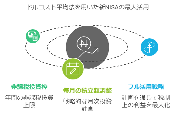 新NISAの非課税枠を最大限に活用するためには、毎月の積立額を調整し、年間の非課税限度額を意識することが重要です。たとえば、毎月30万円ずつ積み立てることで、この非課税枠をフル活用できます。