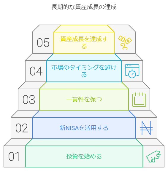 ドルコスト平均法は、長期的な資産形成に非常に効果的な投資戦略です。特に、新NISA制度の導入により、さらに有利な投資環境が整っています。少額から始められ、市場のタイミングを気にすることなく継続的に資産を増やすことができます。