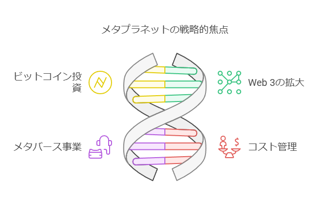 メタプラネットはビットコイン投資に加えて、Web 3やメタバース関連事業を積極的に展開しています。これらの分野は成長性が高く、将来的に同社の主要な収益源となる可能性があります。
