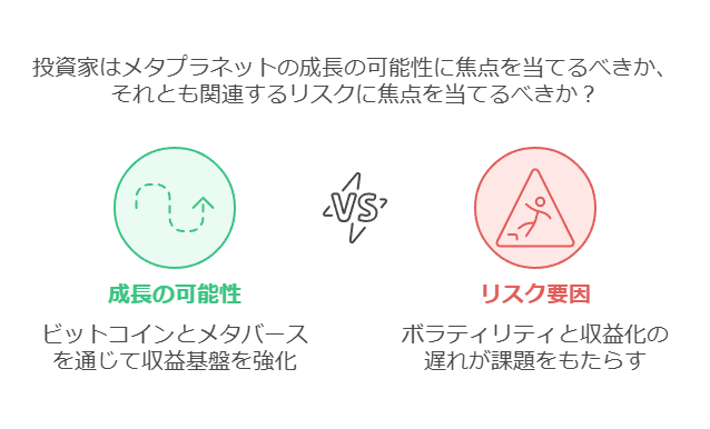 メタプラネットの財務状況や戦略は、投資家にとって魅力的な成長ストーリーを描いています。ビットコイン市場やメタバースの成長が続けば、同社の収益基盤がさらに強化される可能性があります。